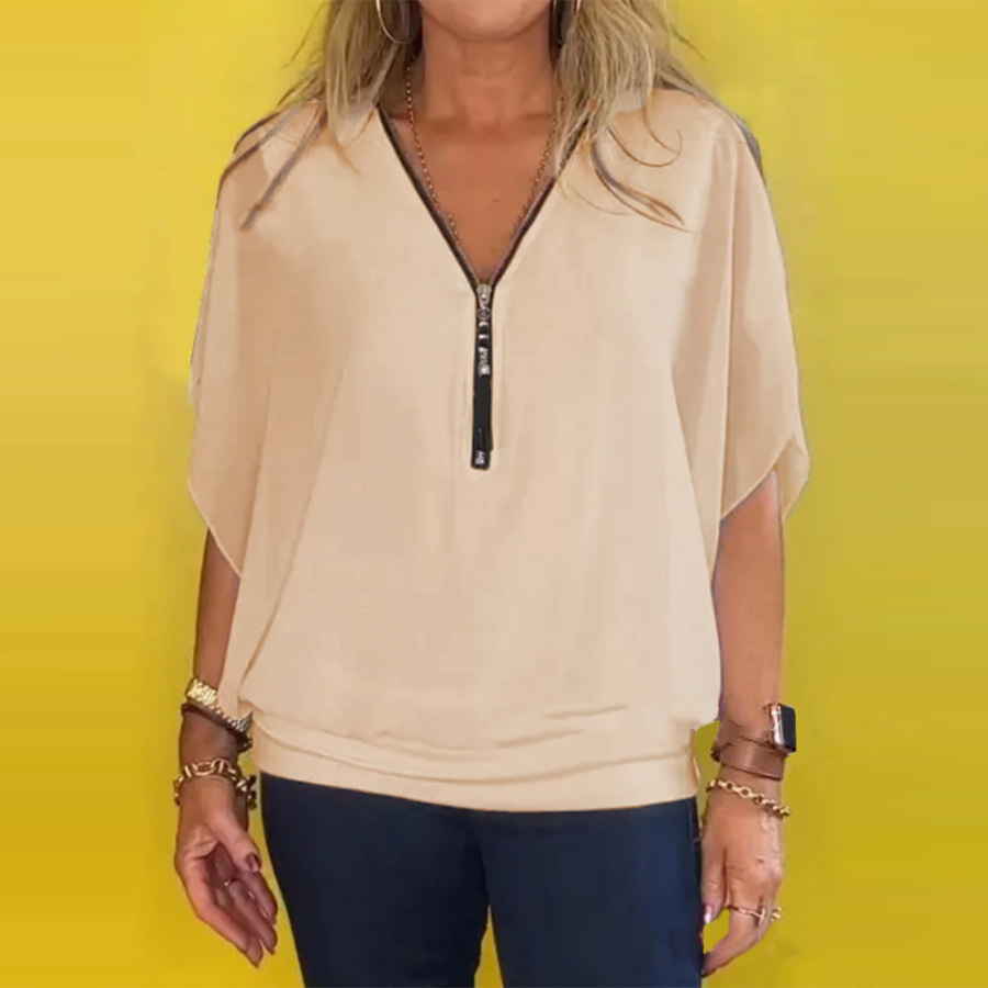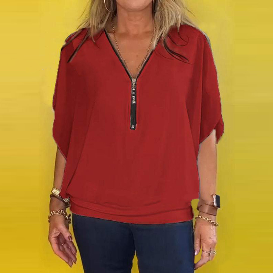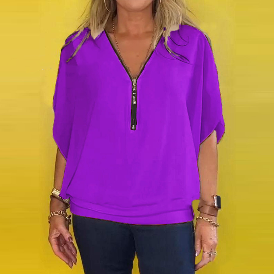 Le paquet comprend : 1 * Top décontracté à col zippé en mousseline de soie pour femme